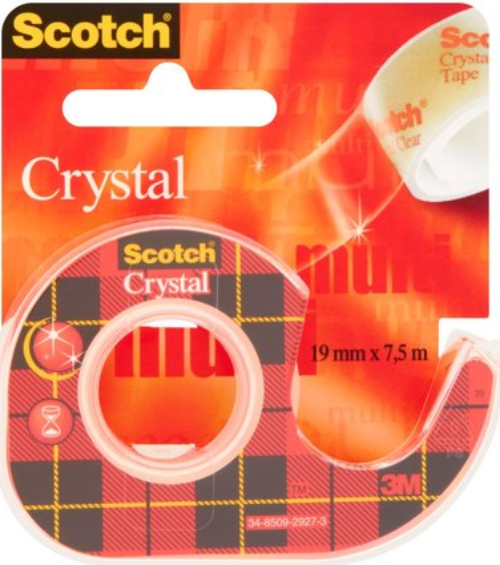Banda adeziva cu dispenser - Scotch Crystal este transparentă, fiind perfectă pentru diverse aplicații la birou sau la școală.