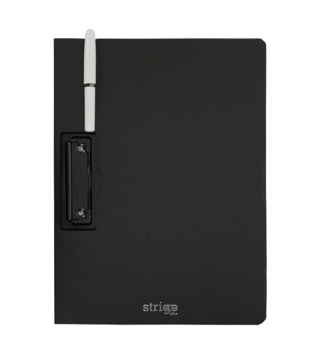 Clipboard Strigo A4, cu suport pentru pix - Negru