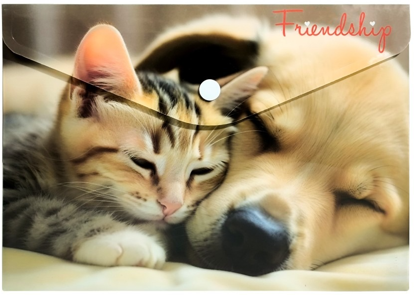Mapă A4 din plastic cu buton, personalizată cu pisici și căței.
