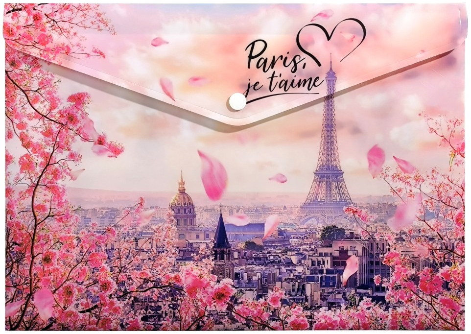 Mapă A5 din plastic cu buton, personalizată cu orașul Paris.