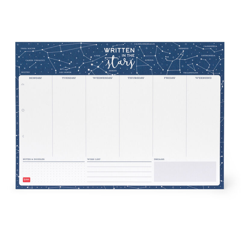 Un planner pentru birou cu 55 de foi detașabile (80 g/m²), o coloană pentru fiecare zi a săptămânii, plus una pentru weekend. Acum îți poți nota mai ușor prioritățile, activitățile și mementourile.