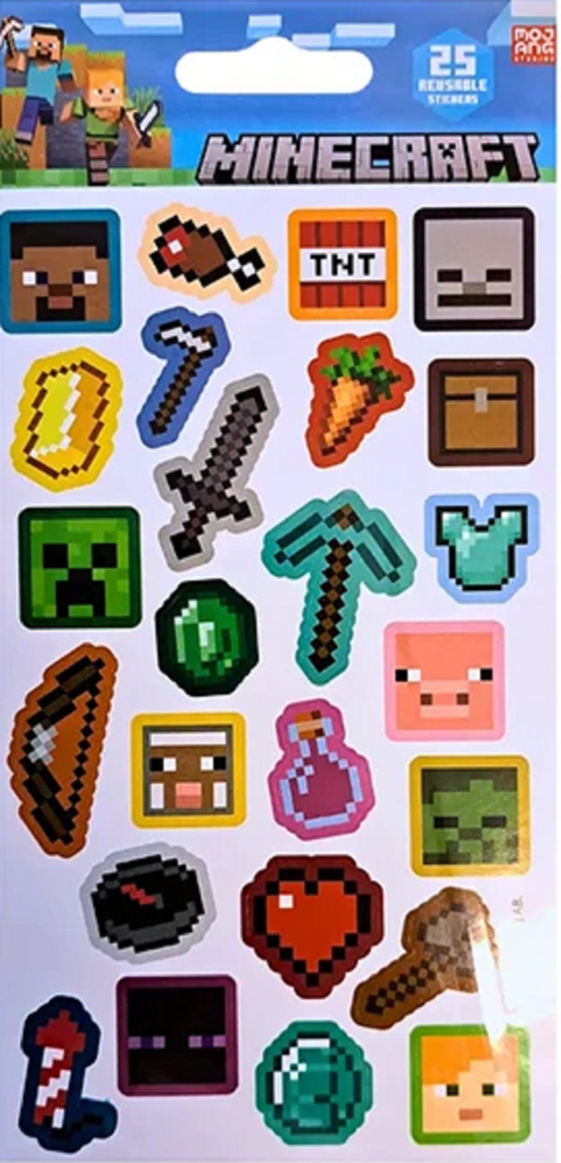 Adu la viață lumea ta pixelată preferată cu această foaie de stickere Minecraft cu efect de hârtie. Cu 25 de modele asortate, cu finisaj mat din hârtie, aceste stickere autoadezive și reutilizabile sunt perfecte pentru decorarea caietelor, accesoriilor tehnologice sau proiectelor de artizanat cu un stil Minecraft.