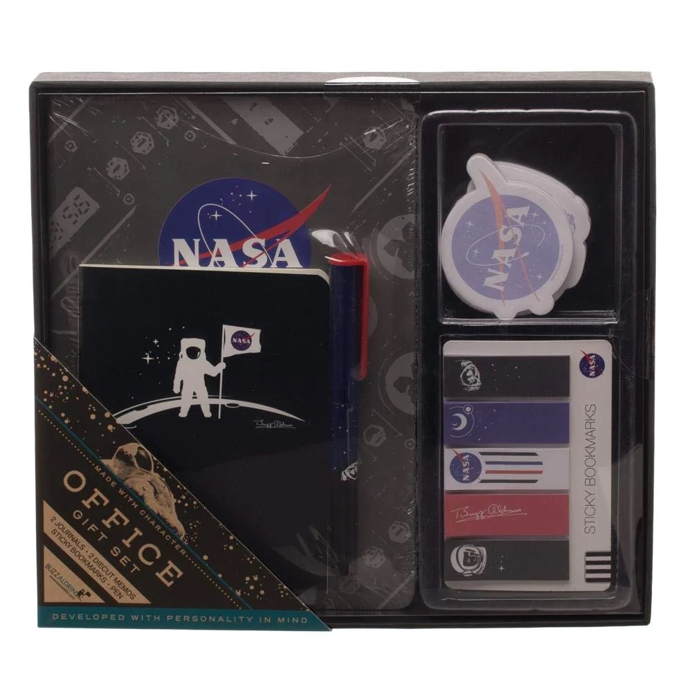 Set de papetărie pentru birou cu tematica NASA și următoarele caracteristici: