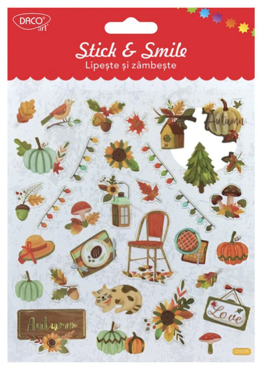 Fie ca vrei sa iti personalizezi obiectele preferate sau doar sa iti petreci timpul liber intr-un mod cat mai creativ, incearca seturile cu abtibilduri "Stick and Smile", ideale pentru decorarea proiectelor de craft precum si a felicitarilor, scrisorilor, etichetelor si caietelor, oferindu-le astfel un aspect unic.