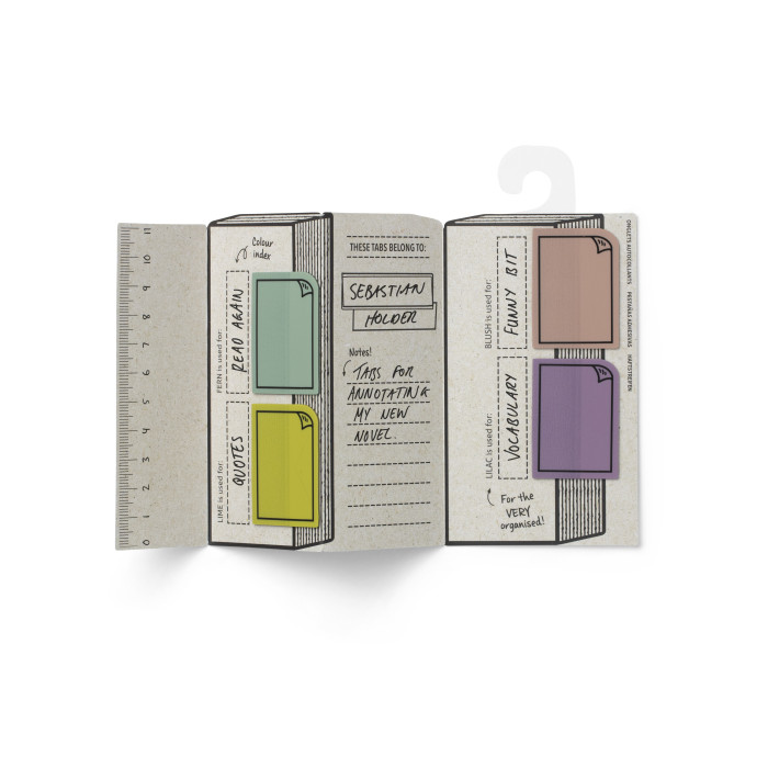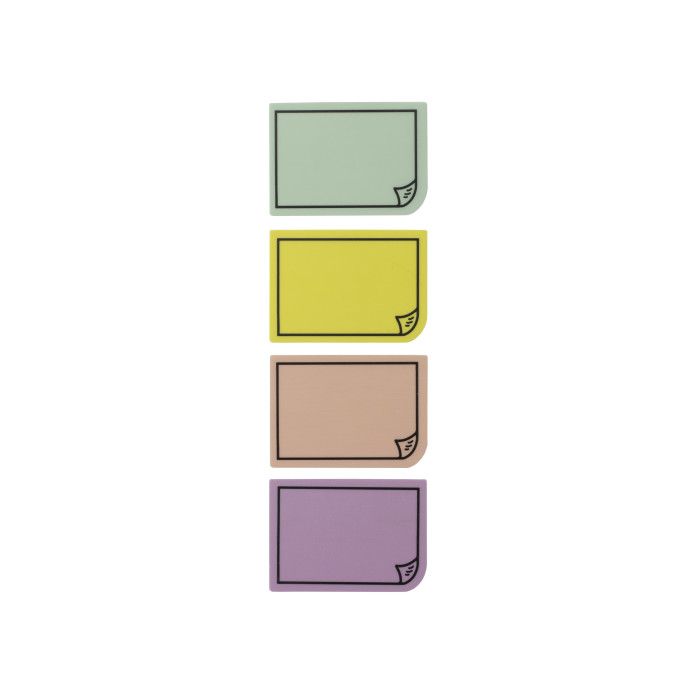 40 de sticky notes autoadezive în nuanțe diverse. Se pot scrie cu marker permanent alb sau negru.