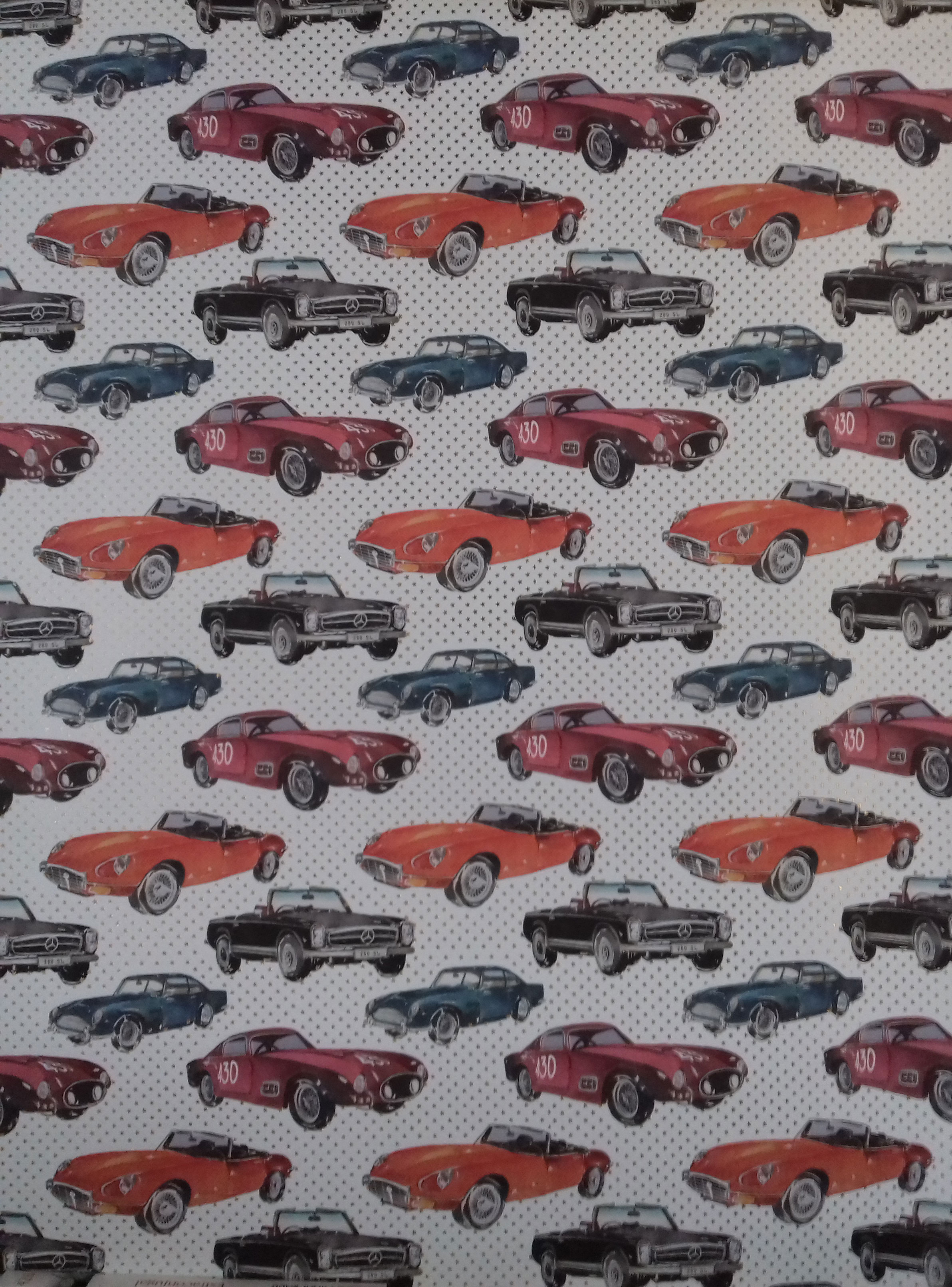 Hartie de impachetat - Classic Cars, cu un design unic si intens colorata, potrivita pentru a-ti impacheta cadourile tale.