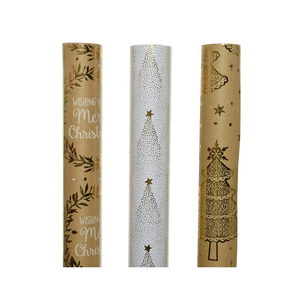 Hartie de impachetat - Foil, Glitter Wreath, Tree - Gold - mai multe modele