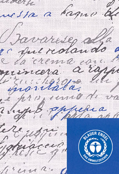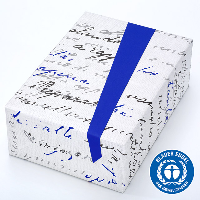 - model diferit față / verso: design scris pe fundal alb / monocrom albastru