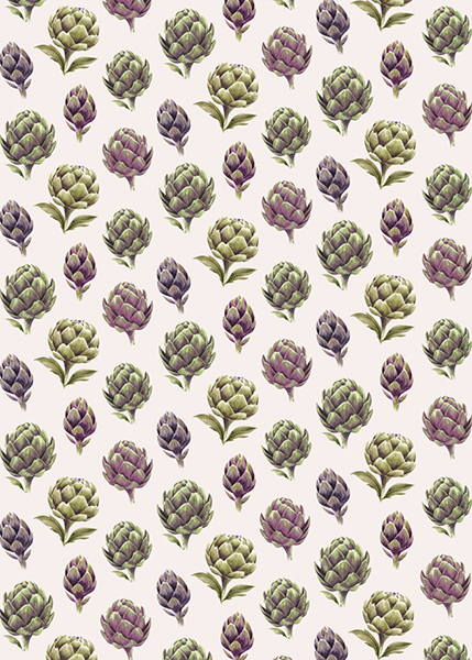 Hârtie de împachetat sub formă de tub decorată cu anghinare.