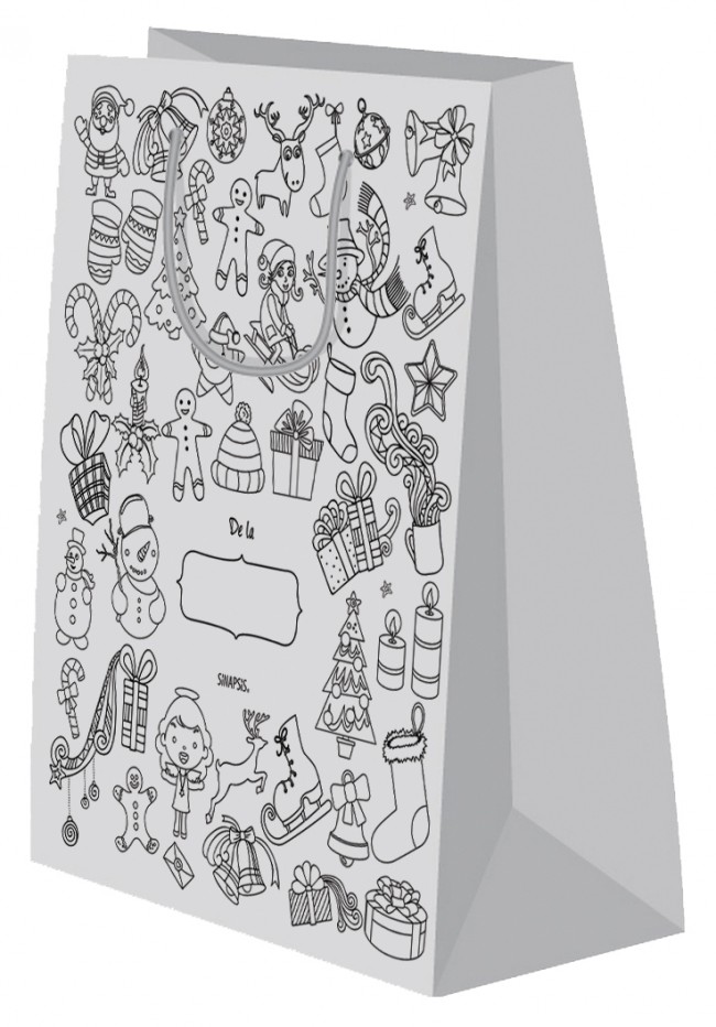După ce o vor colora și decora, copiii se vor bucura de această pungă uriașă în care pot așeza darurile de Crăciun.