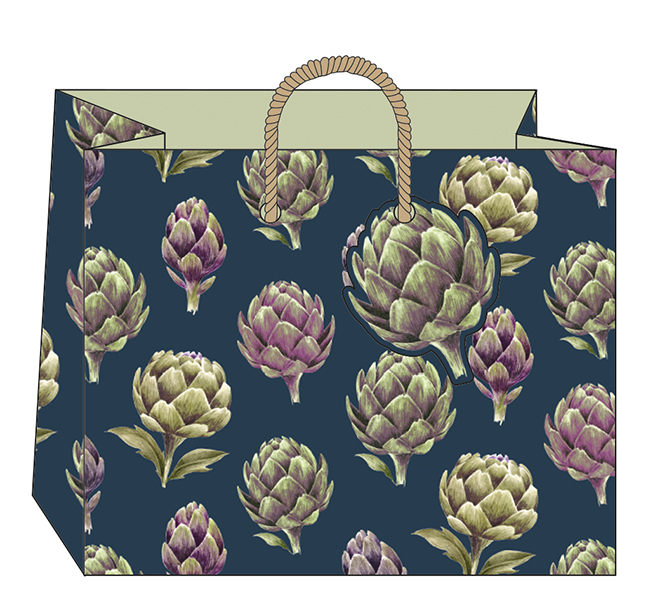 Pungă de cadou format landscape decorată cu anghinare.