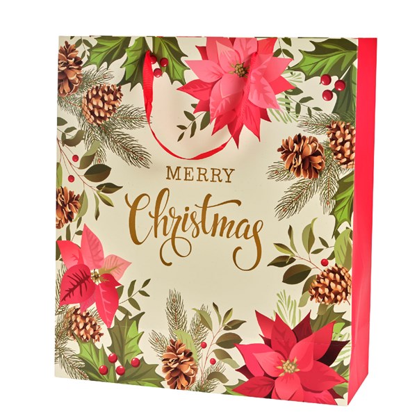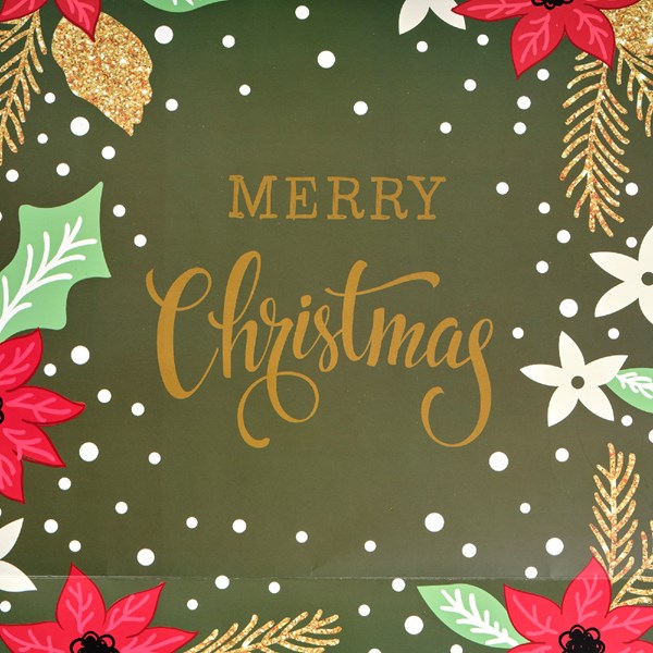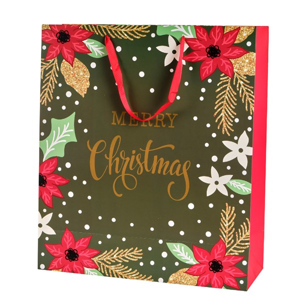 Punga cadou - Gold Glitter Poinsettia Design, XL - mai multe modele