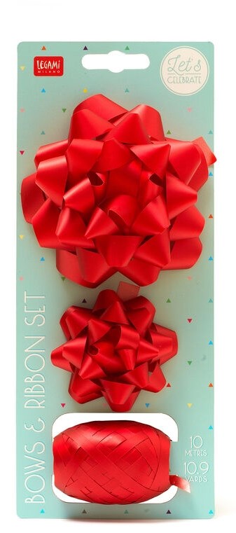 Acest set conține două funde și o panglică roșie. Acestea sunt destinate împachetării cadourilor. Setul este format dintr-o fundă mare, cu dimensiunea de 10 X 4.5 cm, o fundă mică, având 5 X 2.5 cm și o panglică de 10 m.