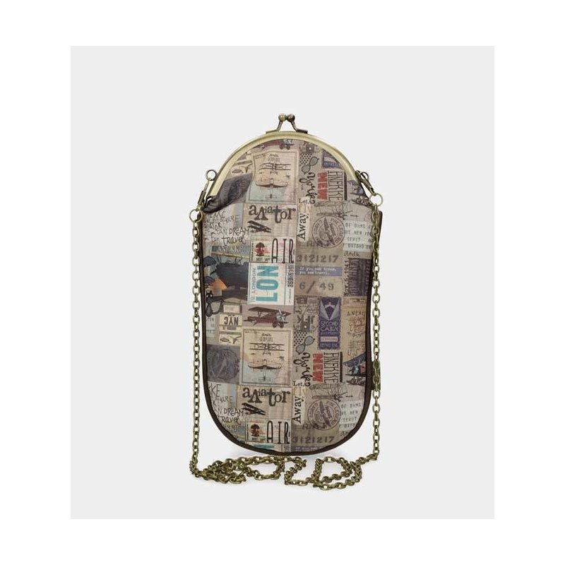 Partea frontală este compusă dintr-un imprimeu complet cu designul Anekke cu costum aviator și detalii de broderie. Spatele este compus dintr-un model caracteristic al colecției în acest sezon. Materialul căptușit pentru a vă asigura mai multă protecție pentru ochelari, închiderea duzelor și un lanț sunt extraurile care alcătuiesc această |"cutie" originală.