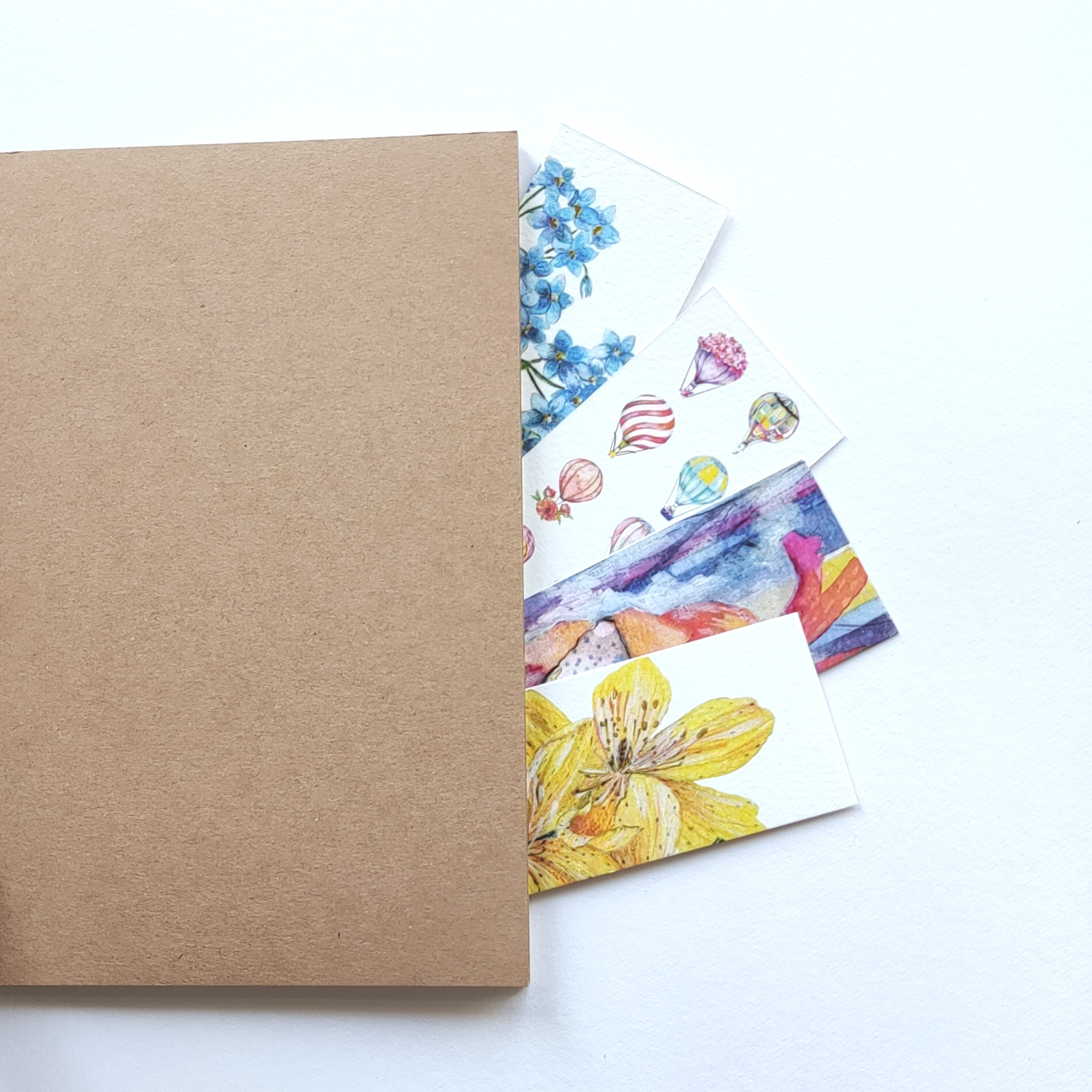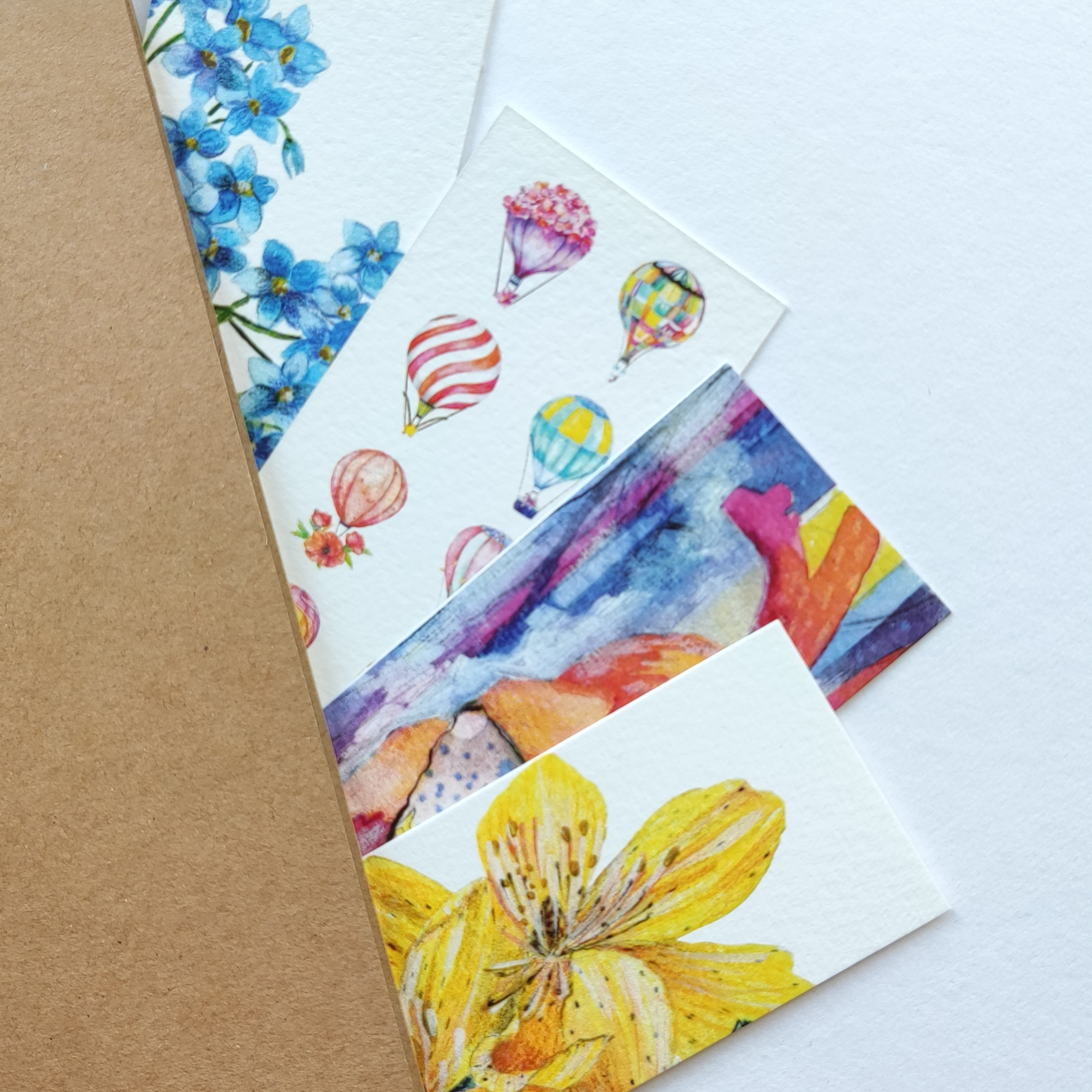 Print-ul este realizat pe hartie groasa cu textura de hartie de acuarela.
