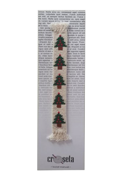 Brăduții sunt nelipsiți din peisajul Sărbătorilor de Iarnă, de ce să nu-i regăsiți în această perioadă și printre paginile cărților preferate? Cartea tiparită va fi mereu apreciată ce cititori. Cu semnele de carte unicat și lucrate de mână vei fi un cititor deosebit, în orice anotimp.Semn de carte cusut manual cu motive de Crăciun, pe pânză matador, 100% bumbac neted. Imaginile sunt cu titlu de prezentare. Fiind produse hand-made, acestea pot suferi modificări de culoare sau formă și abateri de mărime (1-2 cm).