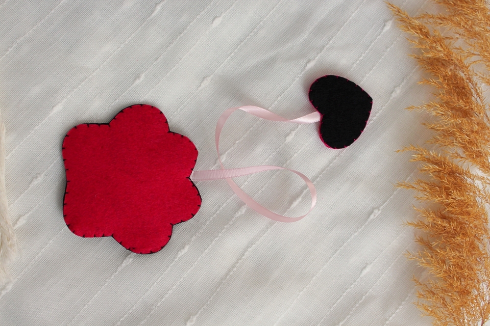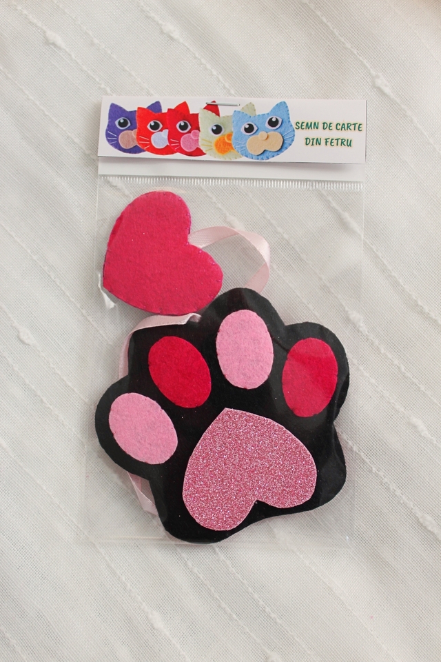 Semnul de carte este cusut manual din fetru, fiecare piesă fiind unică.