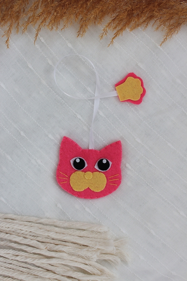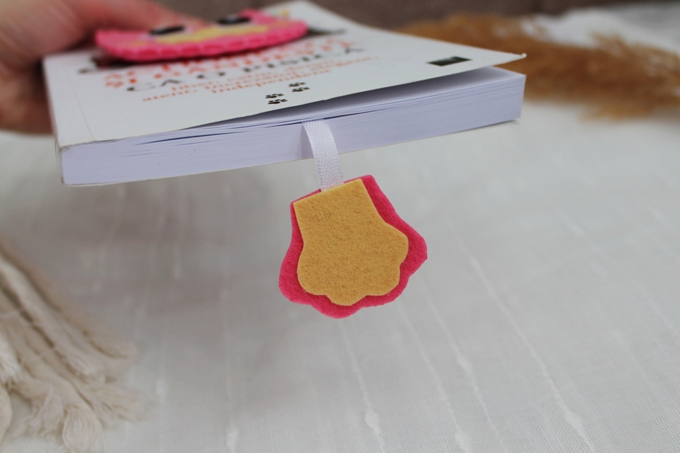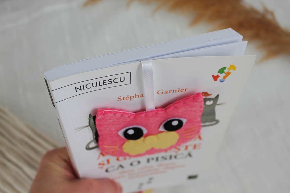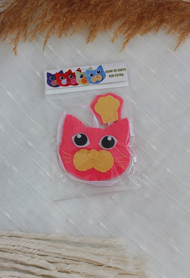 Semnul de carte este cusut manual din fetru, fiecare piesă fiind unică.