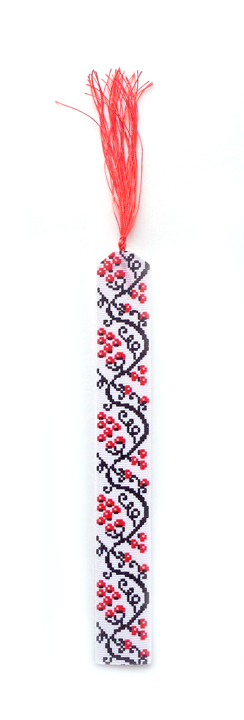 Semn de carte handmade confectionat din banda textila imprimata sau tesuta, ata pentru brodat din poliester si folie melamina. Lungime ciucure aprox. 8 cm.