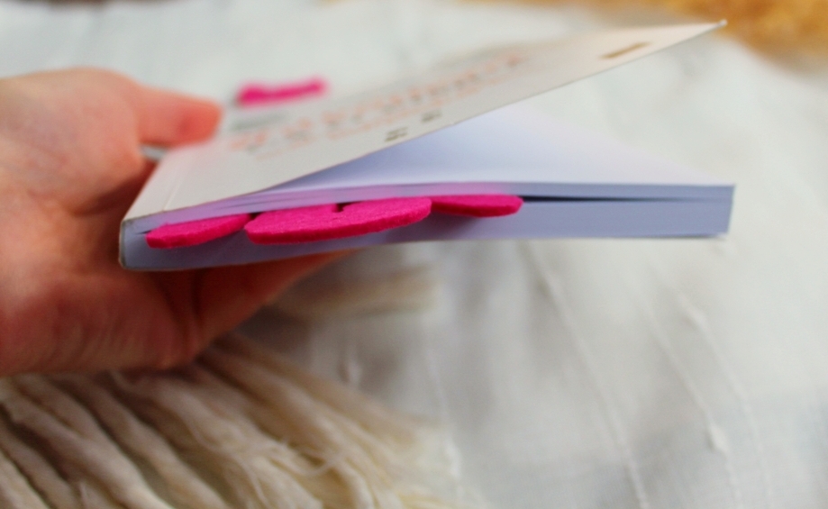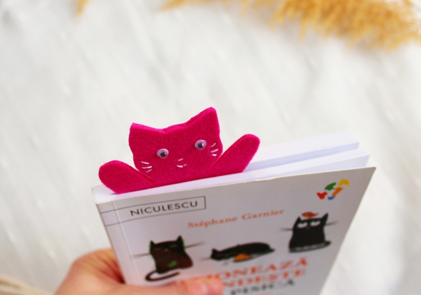 Semnul de carte este cusut manual din fetru, fiecare piesă fiind unică.