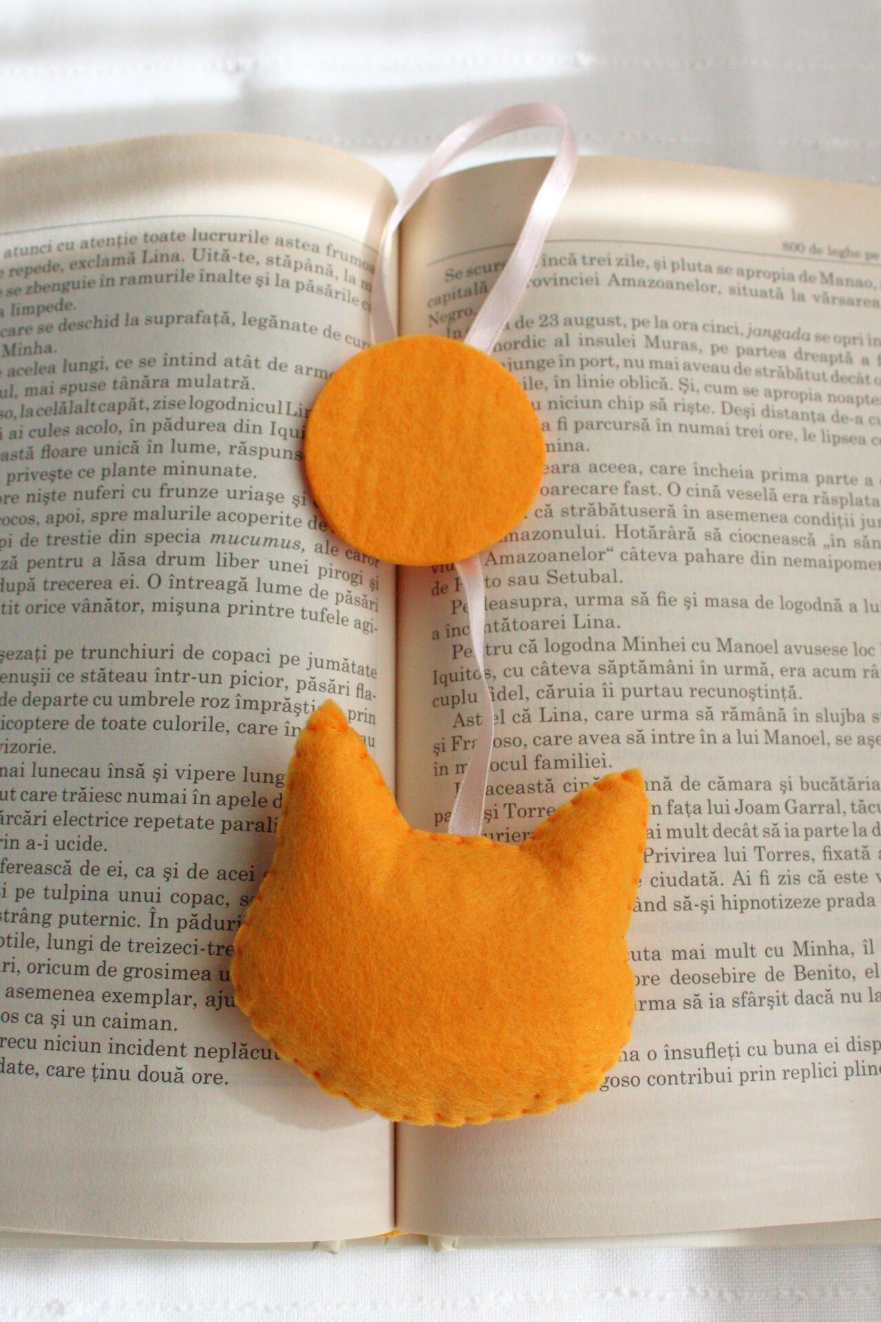 Semn de carte cusut manual din fetru. Fiecare reproducere nu poate fi 100% exactă, existând mici variațiuni de la un produs la altul.