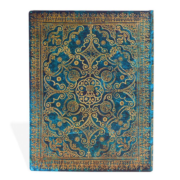 This blue and gold Paperblanks Equinoxe Azure 2018 12-Month Diary reproduces a 1688 binding protecting L’office de la Semaine Sainte. The original binding was adorned “à la fanfare”, a handtooled pattern edged in gilt. “Fanfare”, which was a style popular in the seventeenth century, required tremendous skill on the part of the bookbinder and was reserved for books of great importance.