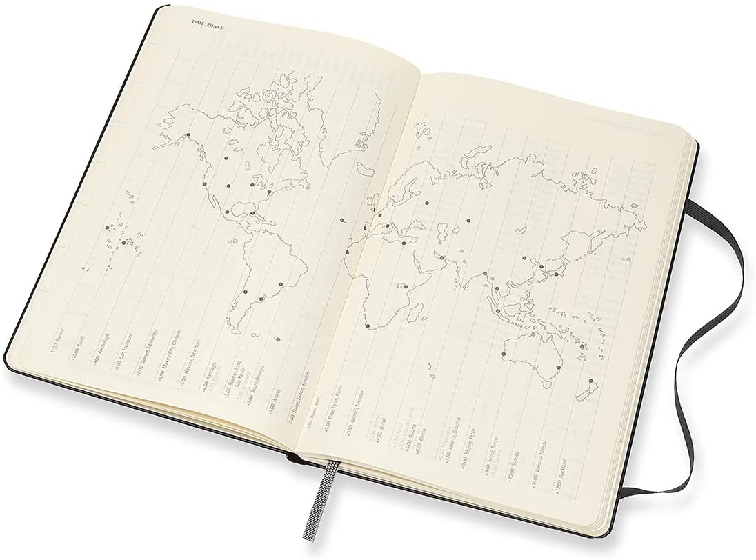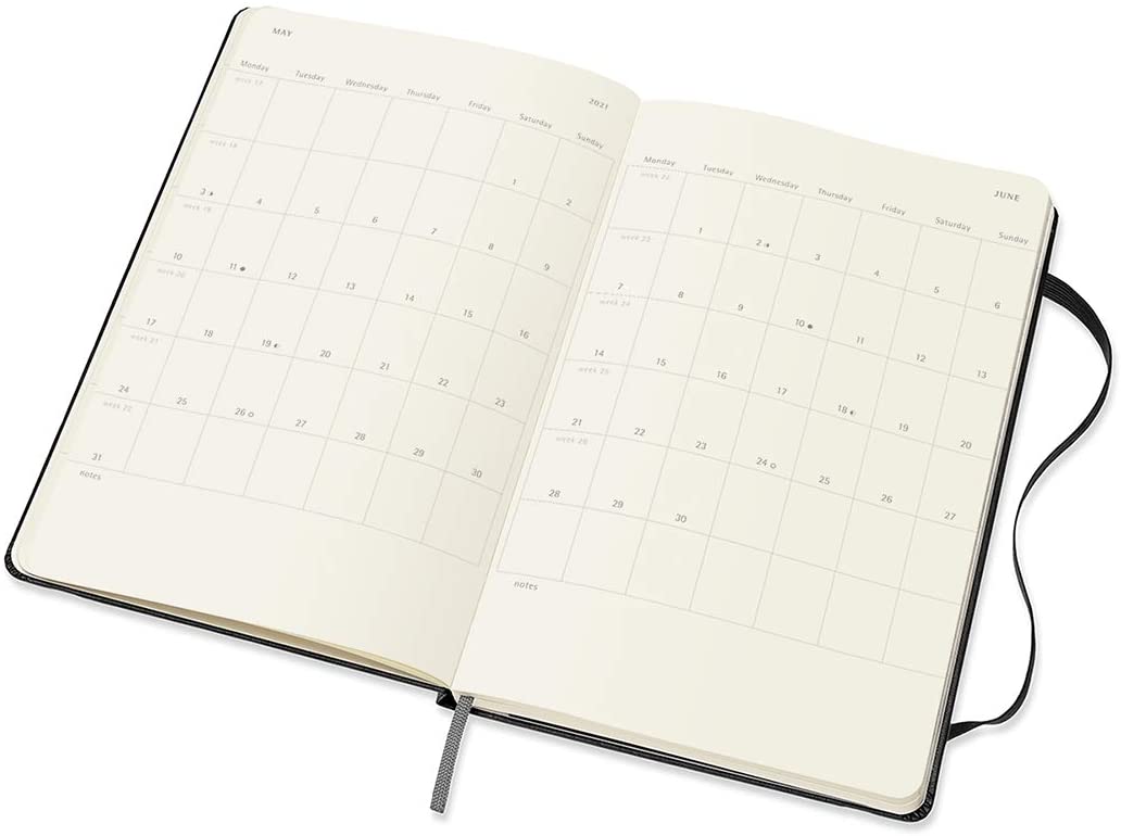 A black elastic closure across the front cover holds everything together, allowing you to tuck loose notes between the pages – as well as in the expandable pocket in the back. The matching bookmark ribbon takes you directly to the right week every time, while gently rounded corners protect your planner against wear and tear as you move about your day.