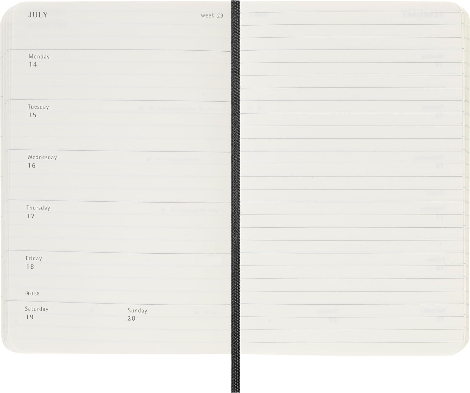 - The pack includes a 18-month weekly planner with a soft cover, available in Pocket size 9 x 14 cm and in black, and stickers to customize the planning
