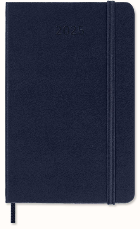 The Moleskine 12-month daily calendar 2025 in pocket/A6 format is the ideal companion for your daily planning. With a hard cover in the elegant color sapphire, this calendar offers one page per day to keep track of your appointments and notes .