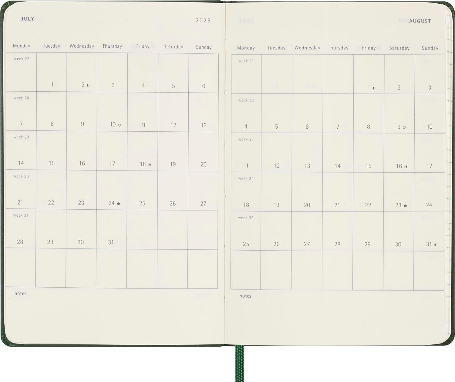 Agenda 2025 - Moleskine Classic 12 Month - Daily Planner - Hard Cover - Pocket, Green
