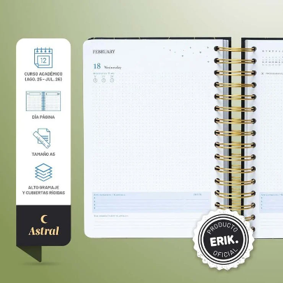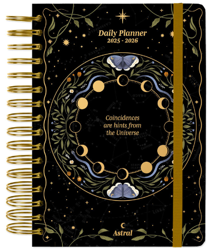Agenda școlară pe 12 luni, din august 2025 până în iulie 2026, cu pagini pe zi.