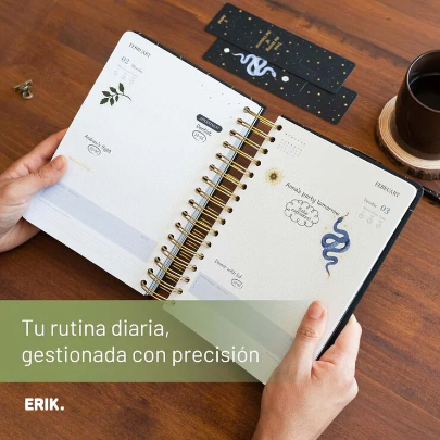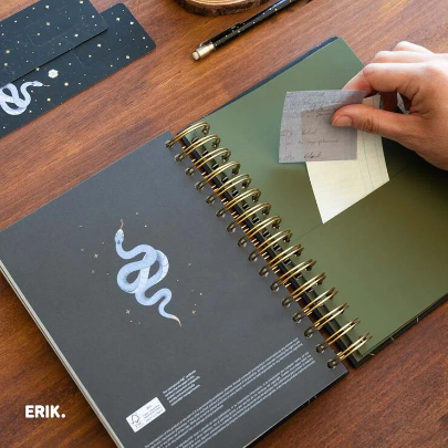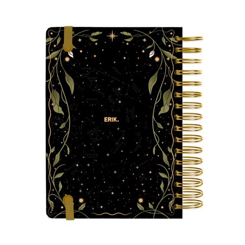 Dimensiuni: 14,8 x 21 cm. Include coperți cartonate, legare sârmă cu bandă elastică, interior personalizat, 2 pagini cu stickere personalizate, 2 semne de carte personalizate din carton și un buzunar. Conține 388 de pagini de hârtie de 100 g/m². Limba: engleză.