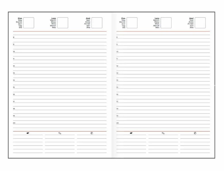 Agendă nedatată cu următoarele caracteristici:
