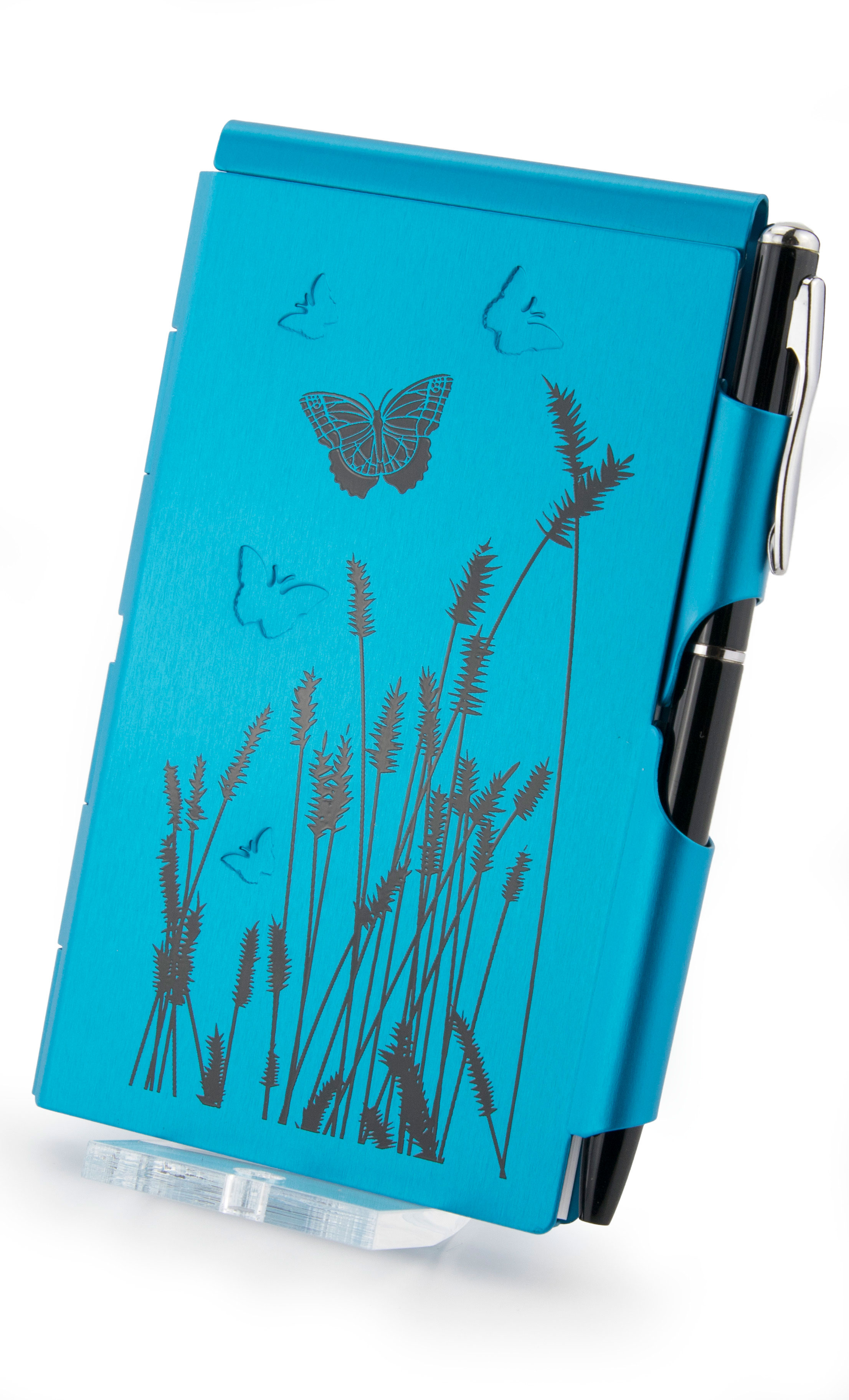 Carnet in carcasa metalica si pix, cu un design unic si intens colorata, potrivit pentru notitele tale.