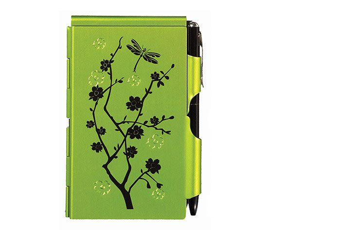 Carnet in carcasa metalica si pix, cu un design unic si intens colorata, potrivit pentru notitele tale.