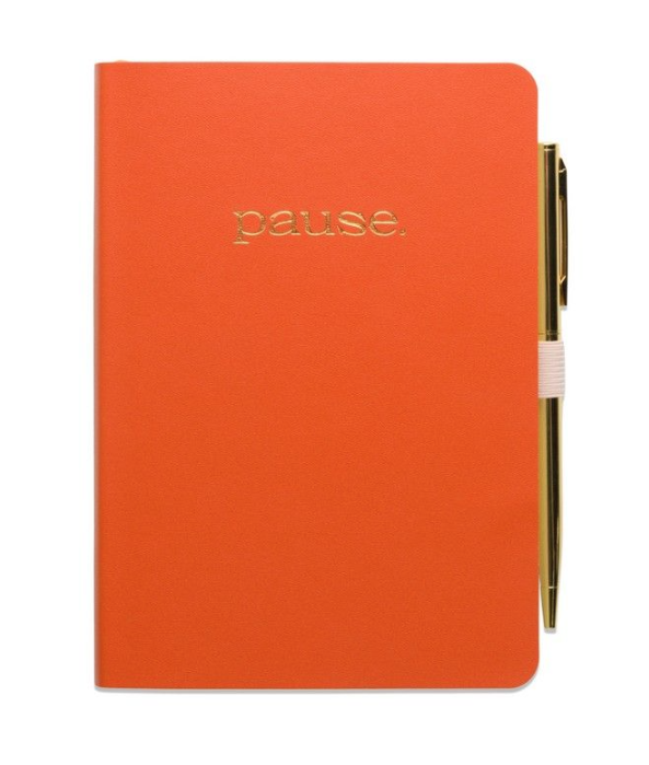 Acest jurnal are: o copertă din piele vegană, 196 de pagini speciale pentru gânduri, obiective și idei + un pix auriu, elegant.