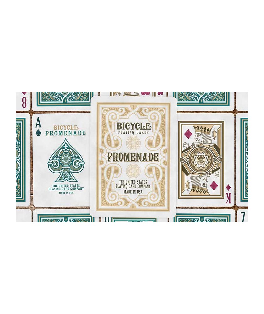 Bicycle Promenade sunt carti de joc inspirate de design-ul Mascotte No. 69 printat in 1900 de New York Consolidated Company. Au o atingere luxurianta data de cerneala metalica de pe cutie si modelul detaliat de pe spate. Sunt excelente pentru jocuri, colectie, carti de poker.