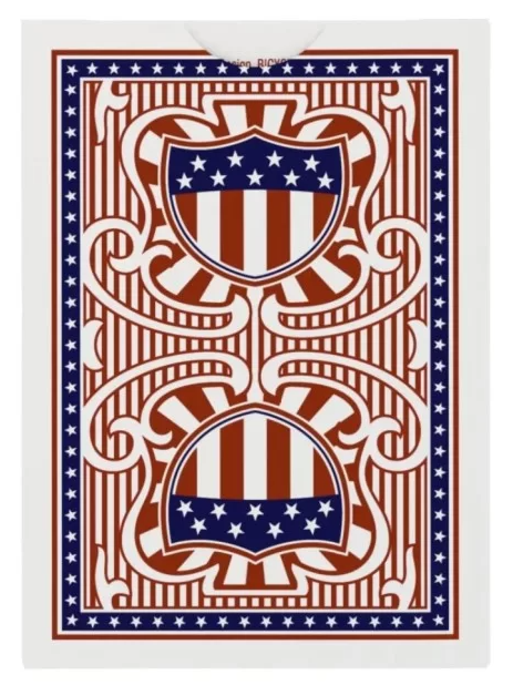 Carti de joc Bicycle USA – design inspirat de steagul american, cu figuri regale in rosu, alb si albastru. Ideale pentru seri de joc cu tematica americana sau colectii de carti de joc unice.