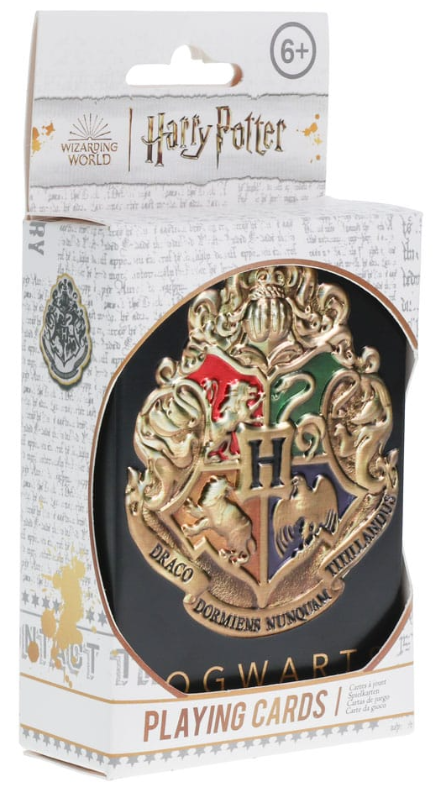 Cărțile de joc Hogwarts sunt grozave pentru a da o învârtire magică jocurilor clasice de cărți. Inspirat de cele patru case ale Școlii de Vrăjitorie și Vrăjitorie Hogwarts, pachetul de 54 de cărți prezintă costume în modelele lui Gryffindor, Hufflepuff, Ravenclaw și Slytherin. Setul vine într-o cutie metalică neagră în relief, completată cu emblematica Hogwarts. Recomandat de la 6 ani în sus.