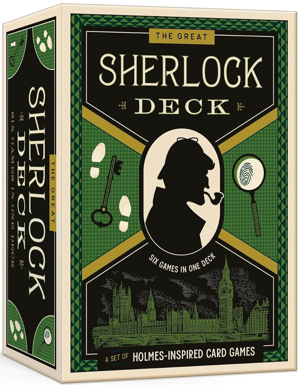 The Great Sherlock Deck turns the works of Arthur Conan Doyle into a unique 60-card deck based around thirteen well-known Sherlock Holmes mysteries. It's family fun for ages twelve and up so anyone can play. Each of the six card games included in the rules book plays like a classic card game, so its easy to get started and join in on the fun.