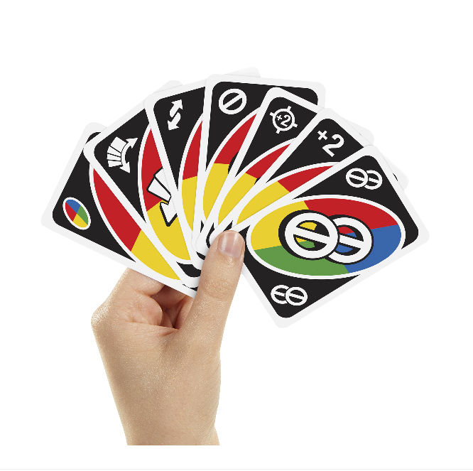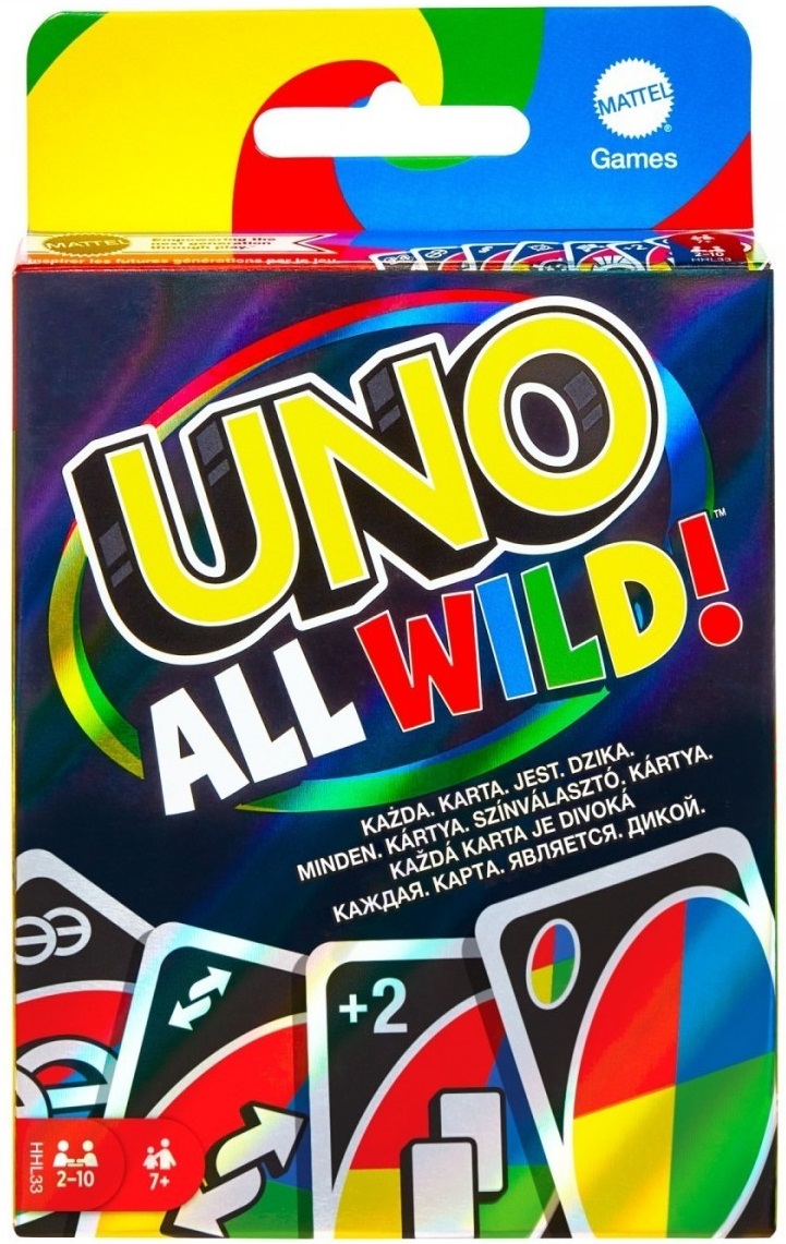 Joc de carti pentru copii si adulti UNO All Wild™ cu 112 carti. Jocul de carti UNO All Wild in care fiecare carte este o carte de actiune pentru un ritm rapid si imprevizibil! Nu exista nici o potrivire a numarului sau a culorii ca la jocul UNO® obisnuit, dar nu este atat de usor pe cat pare. Cartile speciale de actiune schimba cu adevarat jocul! Exista o carte Wild Skip Two in care jucatorii sar peste alti doi jucatori, o carte Wild Forced Swap in care jucatorii isi schimba cartile din mana intre ei!