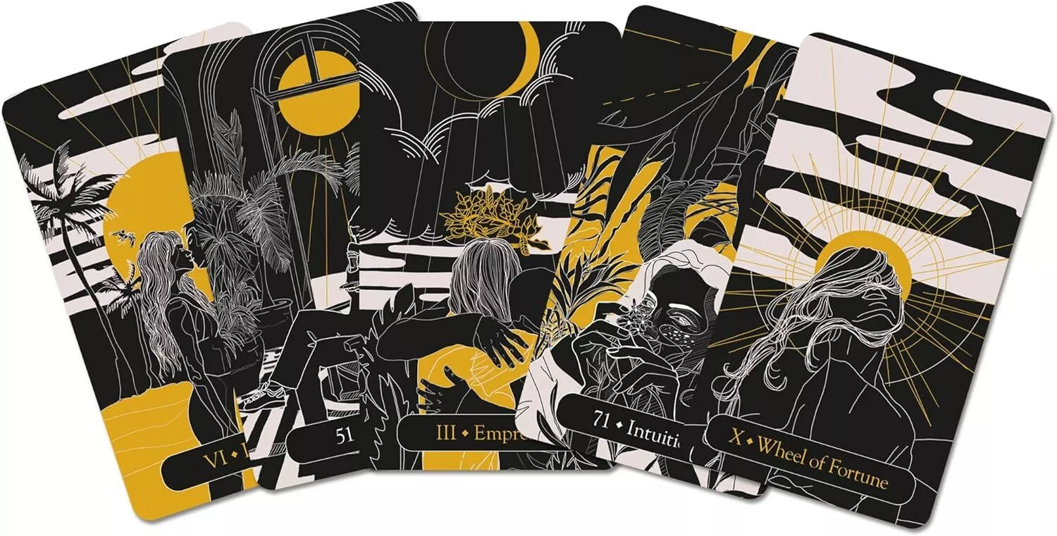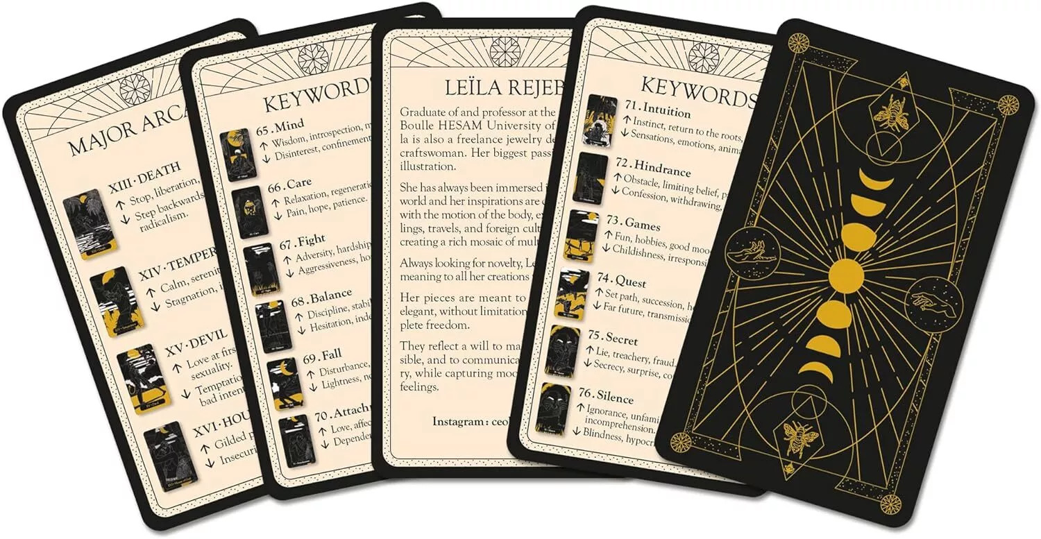 Descoperă Tarotul Dance of Souls (Dansului Sufletelor), o fuziune unică între un tarot clasic și un oracol, imaginată de artista Leïla Rejeb. Cu o interpretare contemporană și originală a simbolurilor tradiționale, acest joc te invită într-o călătorie spirituală. Liniile și culorile plate reflectă legătura și unitatea dintre ființele umane, transformând fiecare extragere într-o experiență unică de explorare a sinelui interior.