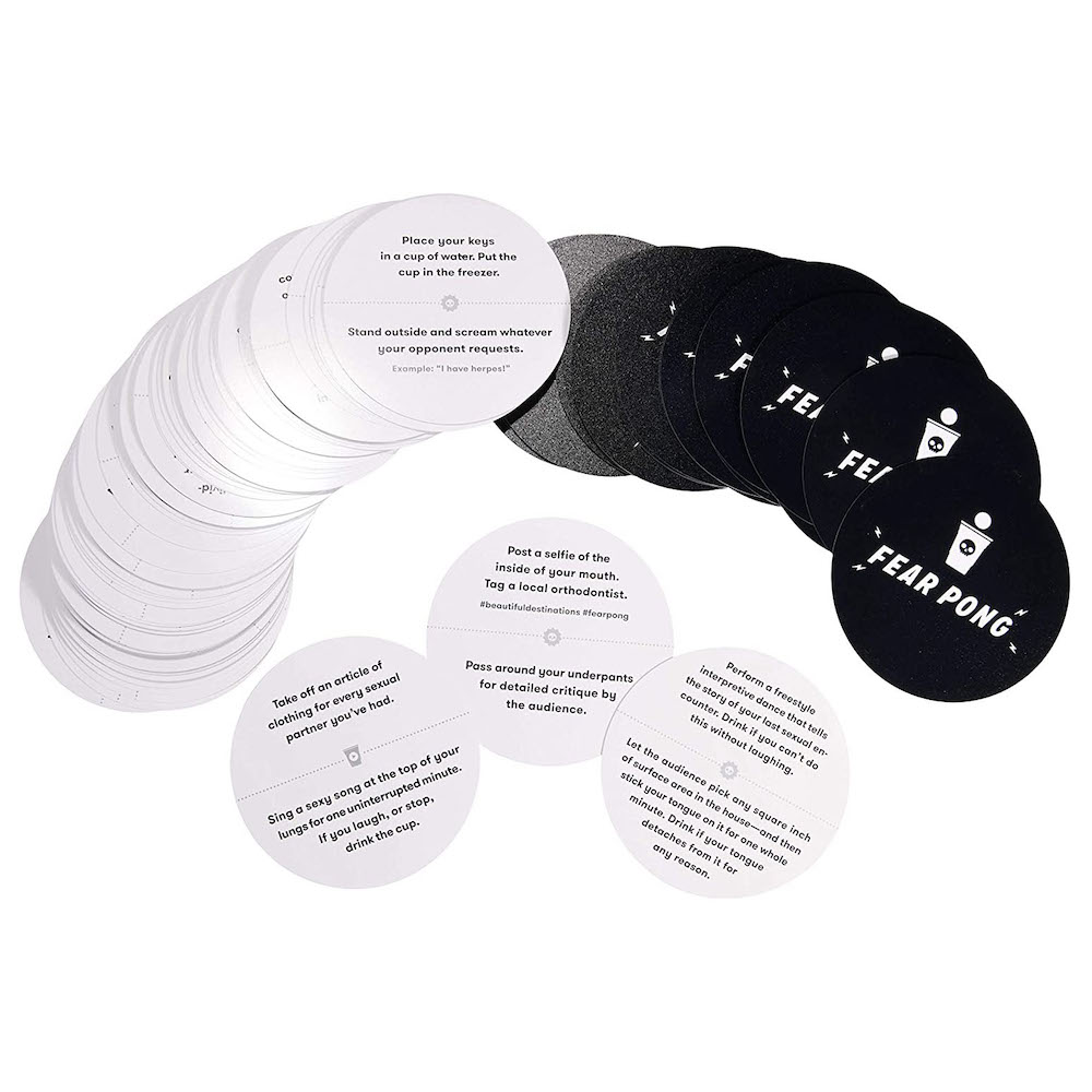 CUM SE JUCĂ: Instalați un joc de bere pong, cu șase pahare pe fiecare parte. Se amestecă provocările și se pune una sub fiecare pahar. Odată ce o minge aterizează în cupa adversarului, ei au de ales: faceți una dintre provocări și păstrați cupa sau refuzați provocarea și beți paharul. Primul jucător care își pierde toate cupele pierde jocul!