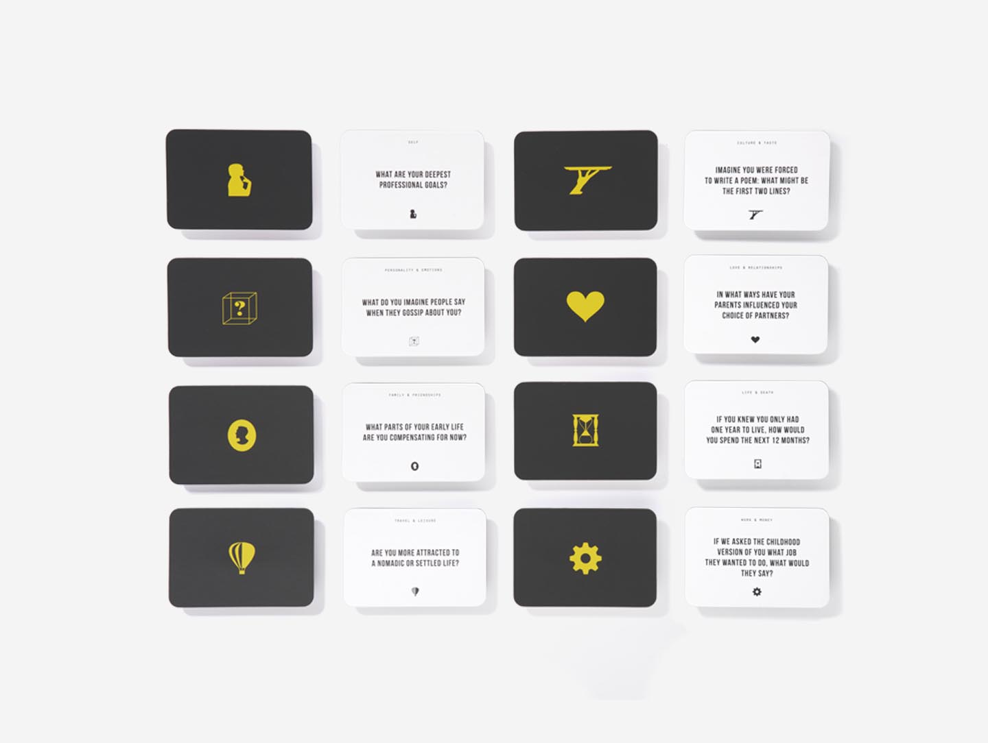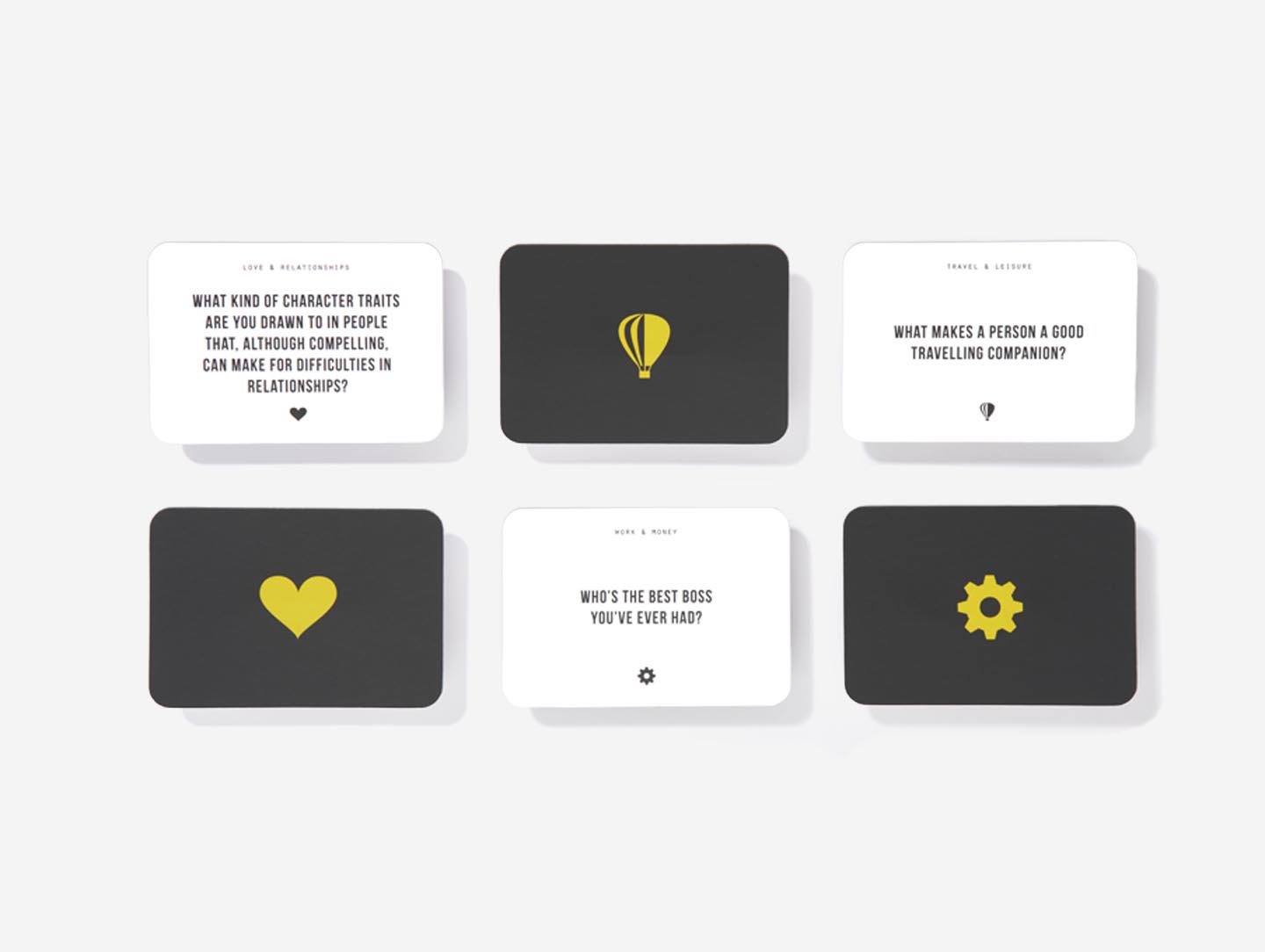 - Pick a card from anywhere in the box and ask your companions to address the question on it with sincerity and thoughtfulness.