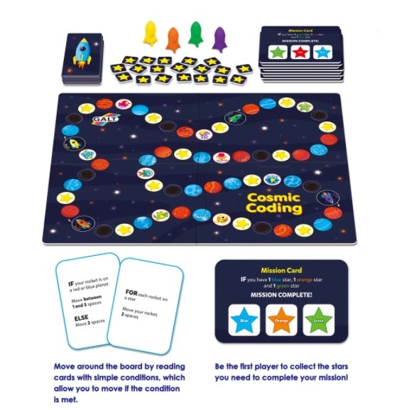 Board game distractiv, conceput pentru a introduce copiii în doemniul programării, cuprinzând conceptele de bază ale informaticii, inclusiv algoritmi și limbaj de programare. Nu sunt necesare cunoștințe prealabile și este inclus un ghid complet detaliat.