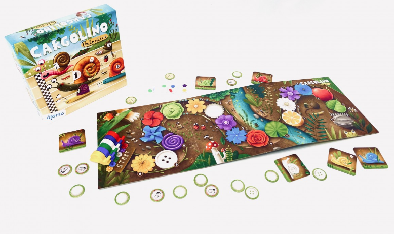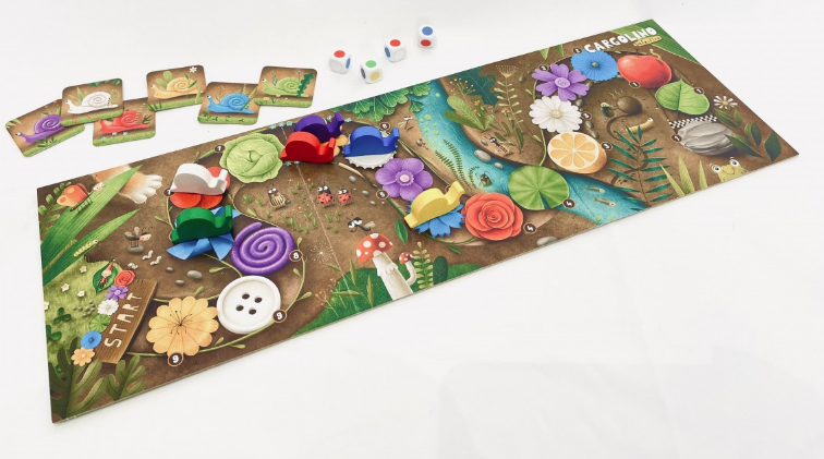 CONTINUT: – Patru zaruri colorate – sase melci de lemn – sase jetoane melc – 1 Plansa de joc – 40 de jetoane cochilie – Instructiuni Scopul jocului: Jucatorii trebuie sa foloseasca rezultatul zarurilor pentru a muta melcii celorlalti jucatori, astfel incat melcii lor sa ramana pe ultima pozitie la sfarsitul cursei.