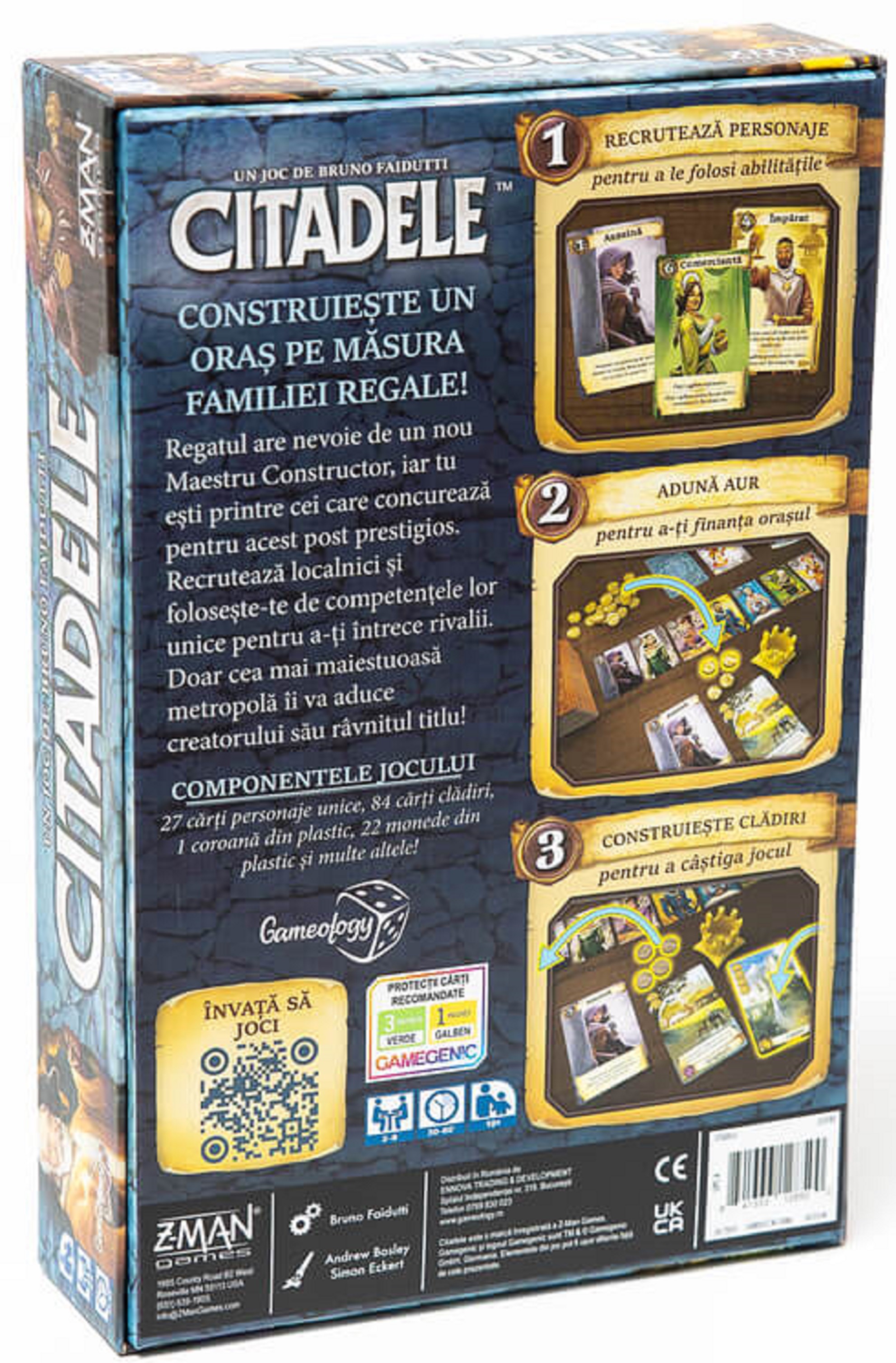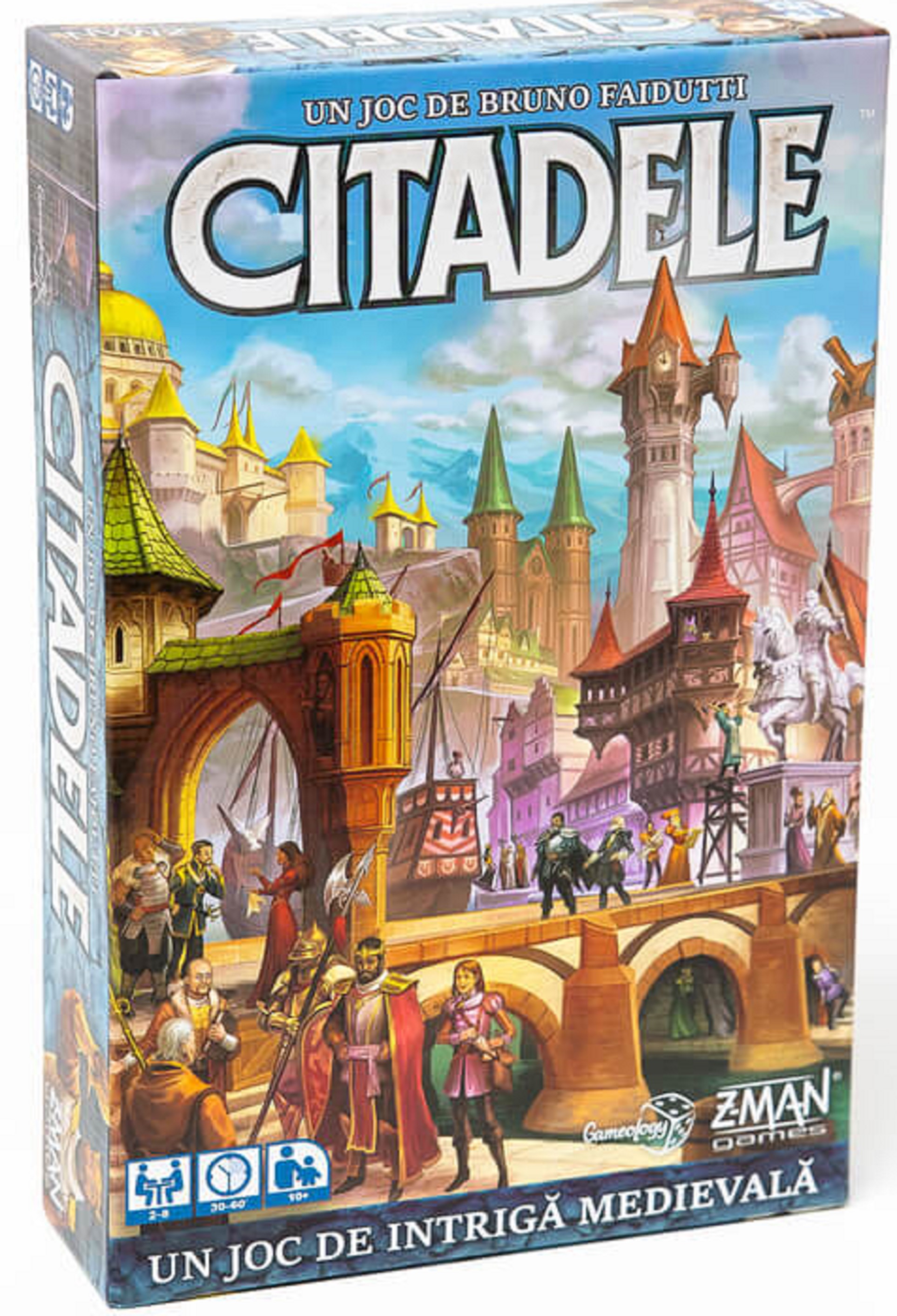 Citadele este un joc de cărți în care tu și adversarii tăi te lupți pentru a construi cel mai magnific oraș medieval. Proiectat de Bruno Faidutti și publicat pentru prima dată în 2000, Citadele a devenit unul dintre cele mai populare și mai grozave jocuri ale erei moderne. Se mândrește cu un cadru mecanic complet accesibil, care este ușor de învățat, dar bogat în înșelăciune, strategie și intrigi.