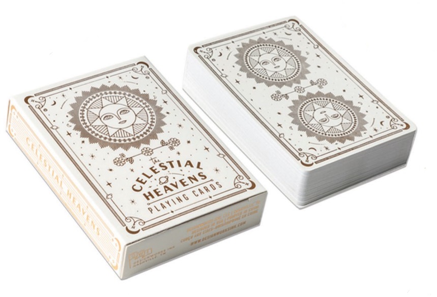 Atât cutia cât și cărțile de joc sunt împodobite cu detalii aurii.