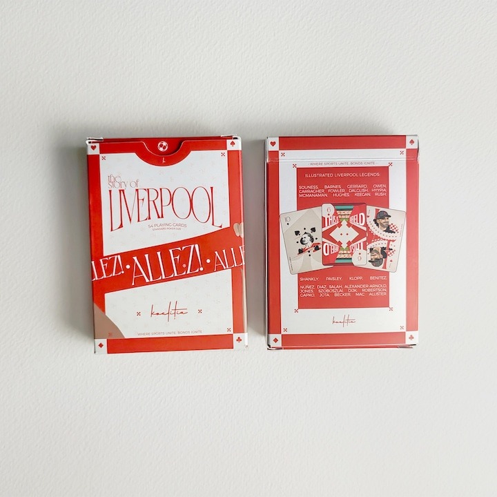 Cartile de joc "The Story of Liverpool" sunt potrivite atat pentru serile de jocuri cu prietenii, cat drept cadou pentru fanii infocati LFC. Am cautat sa incorporam atmosfera, nostalgia si diferite legende ale celui mai iubit club de fotbal din Romania, toate intr-un singur pachet, asadar vei descoperi o sumedenie de detalii si mesaje ilustrate. Allez Allez Allez!