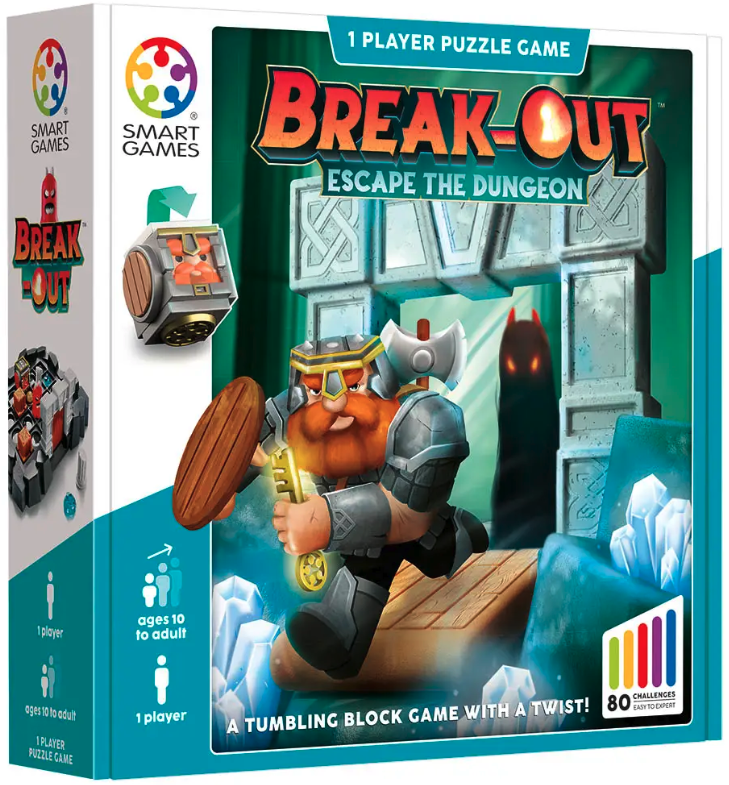 Break-out este un joc pentru copii din seria Smart Games cu elemente de inalta calitate. Jocul include 80 de provocari logice cu dificultati crescatoare, recomandat pentru varstele 10+.